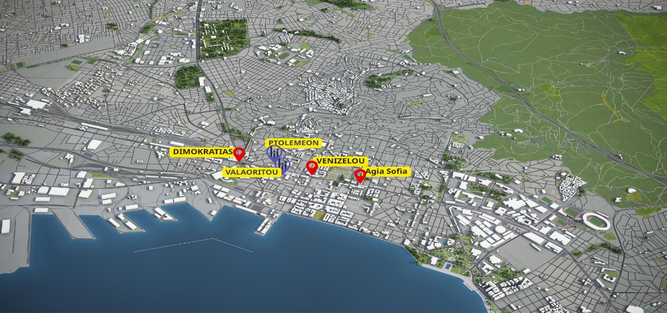 הממוקמות בלב מרכז העיר - במרחק הליכה נוח מהפרויקטים שלנו ברחובות פטולמאון וולאוריטו. משם היא ממשיכה דרך התחנות: